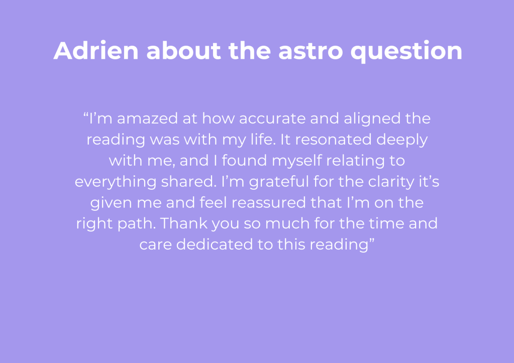the astro question is for when you want an answer for a specific theme or question in your life but do not feel like the investment of a full astro consult is for you right now